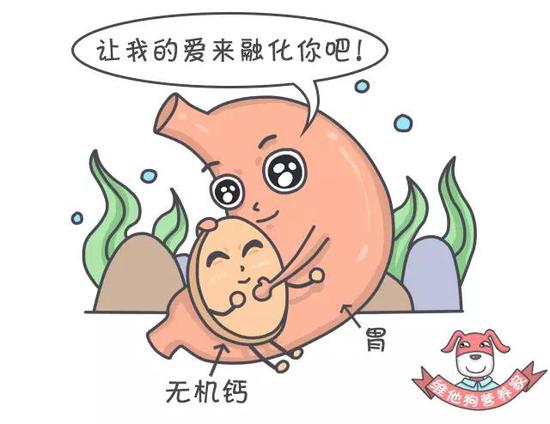 前面我们提到过,这里再巩固一下。无机钙中碳酸钙是不能直接被人体吸收的,必须先溶解,释放出钙才能被利用,而碳酸钙不融于水,融于酸,而胃酸正好可以将碳酸钙溶解。