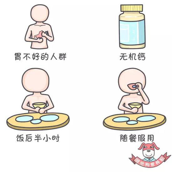 ②胃不好的人群:饭后半小时吃or随餐服用(选择的是无机钙)